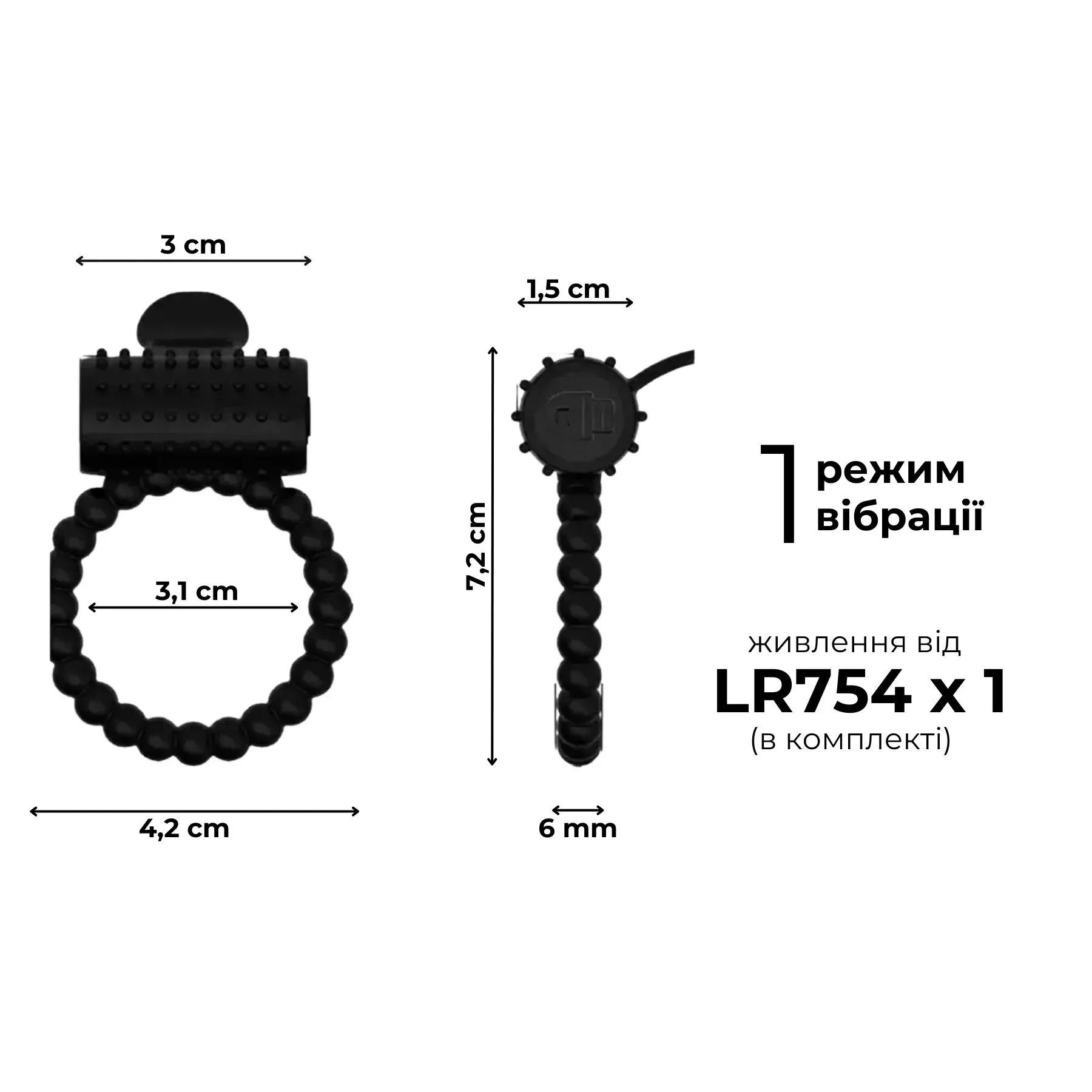• Живлення: батарейка LR754 (в комплекті)